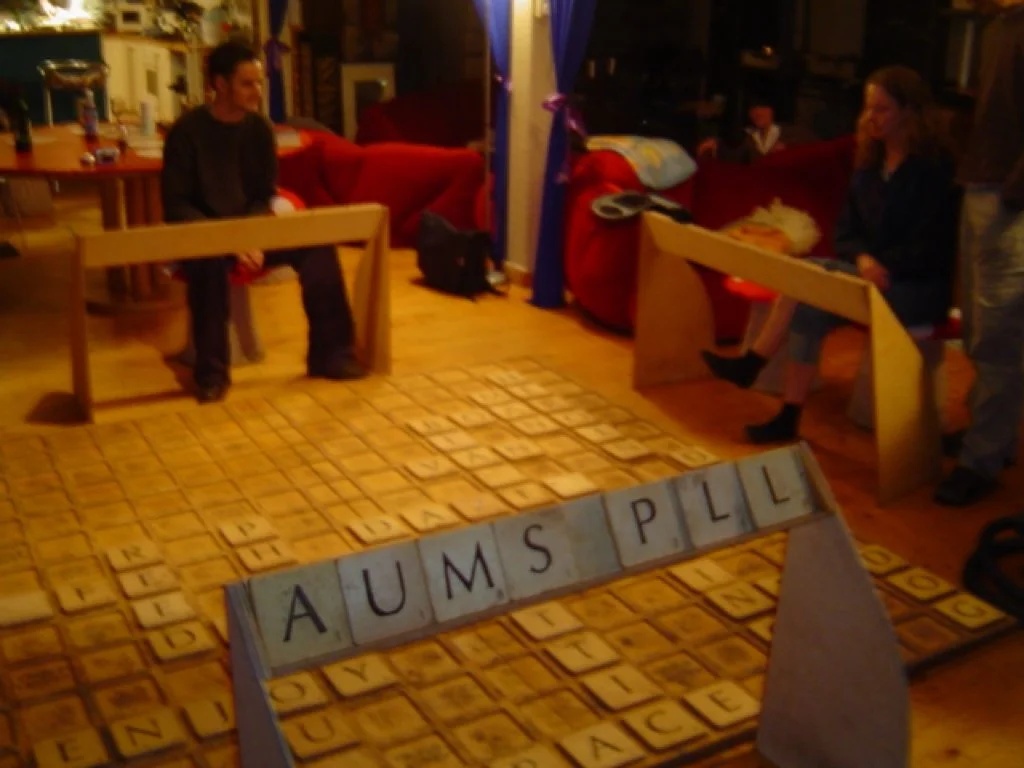 We were living in London in a warehouse space with lots of creatives. A giant wooden scrabble game was one of the first games Phil made.